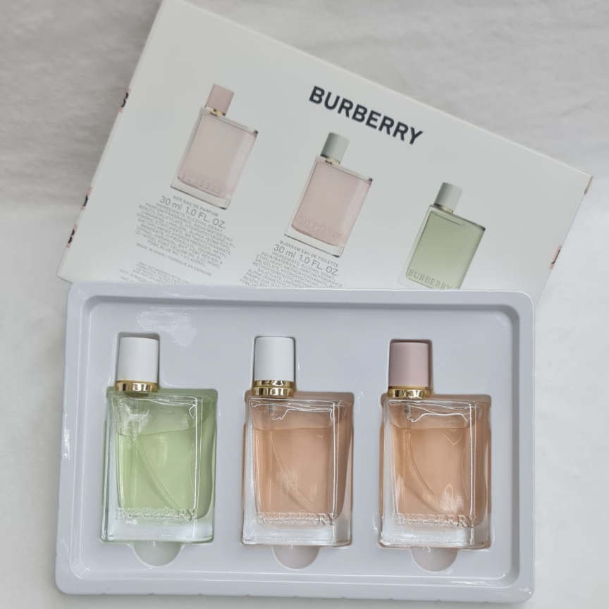 Each bottle showcases Burberry’s signature minimalist design, filled with delicate hues that reflect the unique character of each fragrance. Presented in a clean white tray, the set looks refined and luxurious while keeping the bottles secure and easy to display.